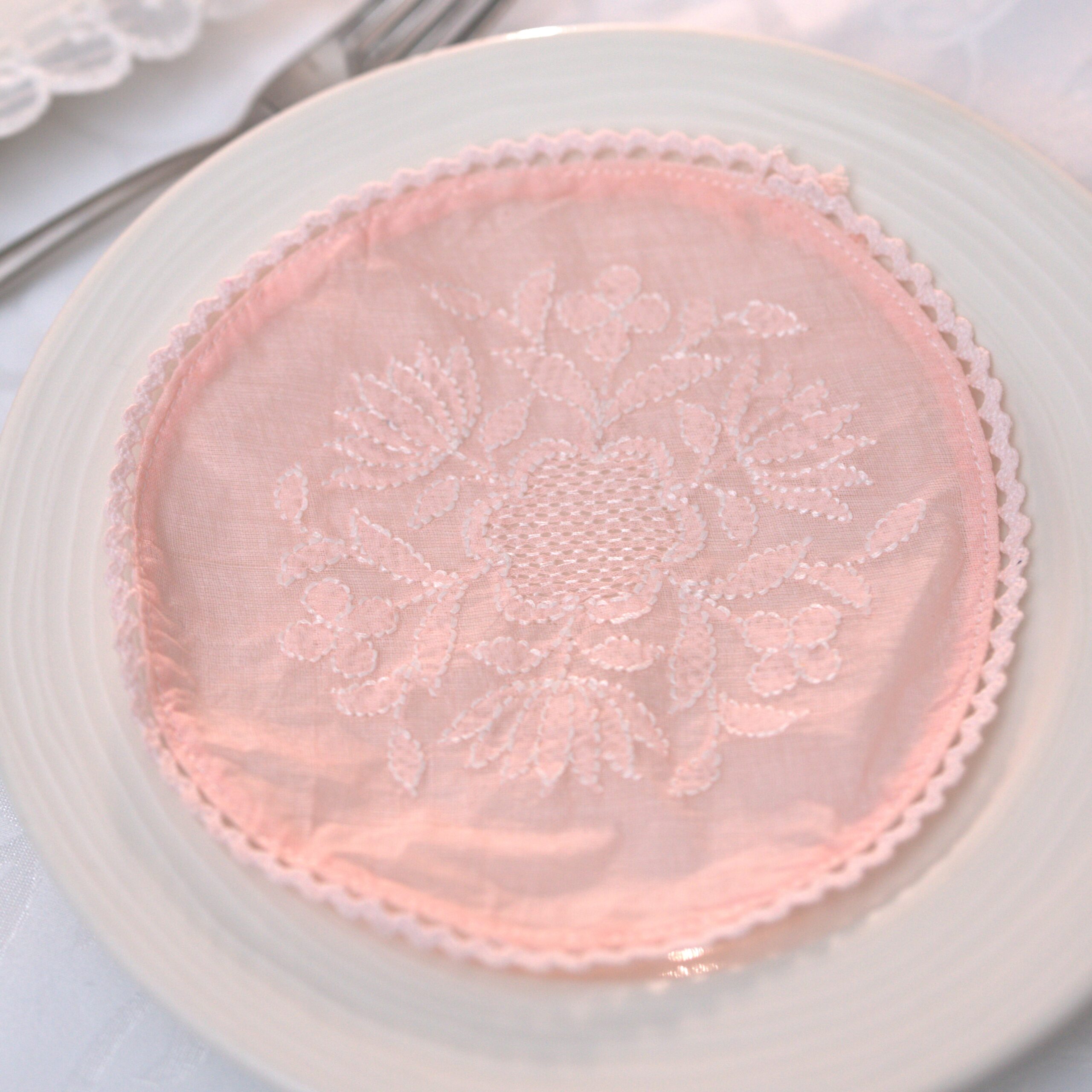 Elevate your tea or coffee moments with the Blush Bloom Chikankari Coaster Set. Crafted in soft pink cotton, each coaster is hand-embroidered using traditional Chikankari techniques—Bakhiya, Fanda, and Jali—bringing a delicate and graceful charm to your table. Designed to protect surfaces while adding a subtle touch of elegance, these coasters make everyday moments feel special.