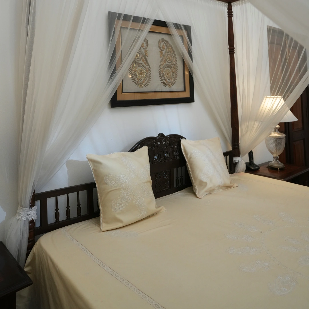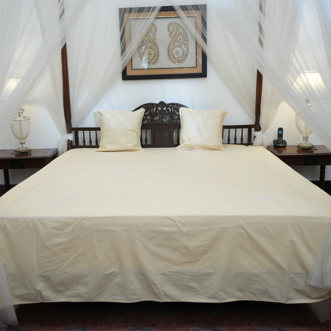 The Eleanor Neutral Beige bedspread exudes understated elegance, harmony, and timeless sophistication. It evokes a sense of calm and reassurance—grounded yet refined—infusing any space with both comfort and composure. The Eleanor Collection embodies this ethos, translating heritage techniques and conscious luxury into designs that are effortlessly refined and enduring. This exquisite piece seamlessly marries traditional craftsmanship with mindful luxury. Its natural, earthy hues reflect its origins, celebrating the skilled artisans who meticulously create each motif with precision, care, and a deep reverence for timeless artistry.