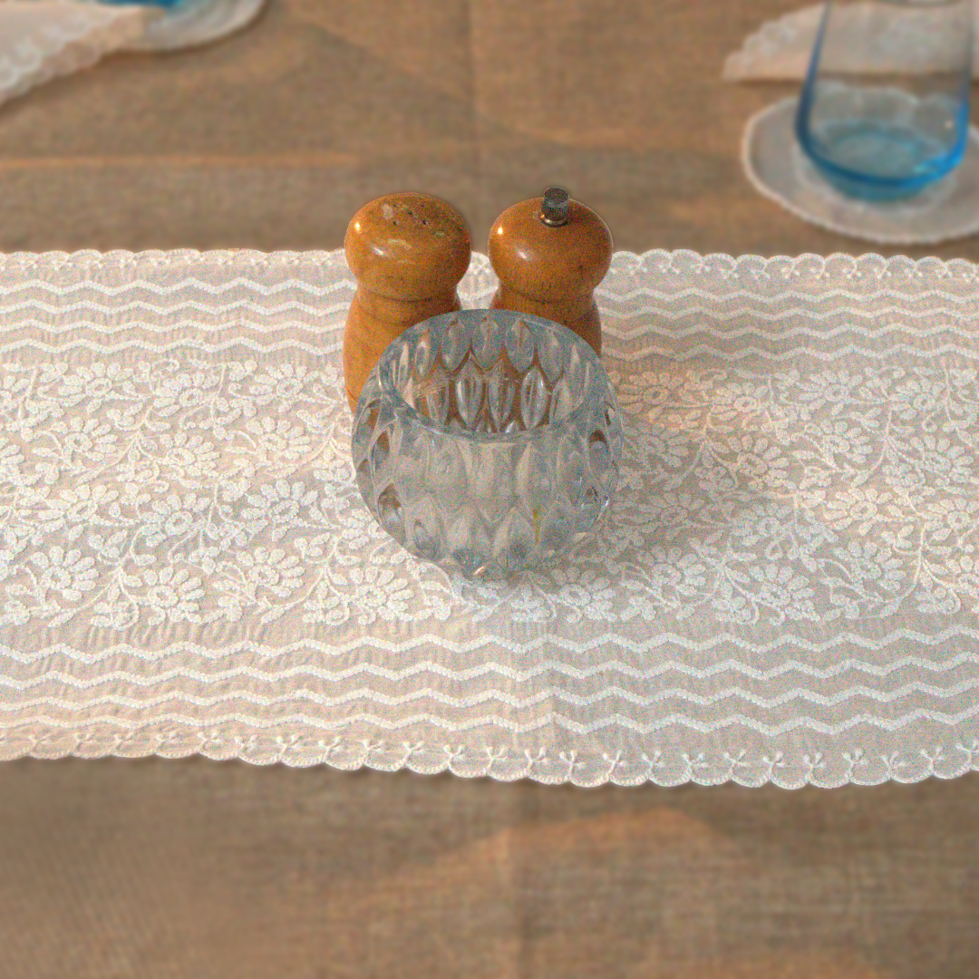 The subtle pearl-toned base enhances the intricate handwork, while the sheer texture adds depth and softness to your table setting. Finished with refined edges and gentle detailing, this runner strikes the perfect balance between tradition and contemporary minimalism.Lightweight yet sophisticated, it layers beautifully over solid or textured table linens, making it ideal for both everyday dining and special occasions.
