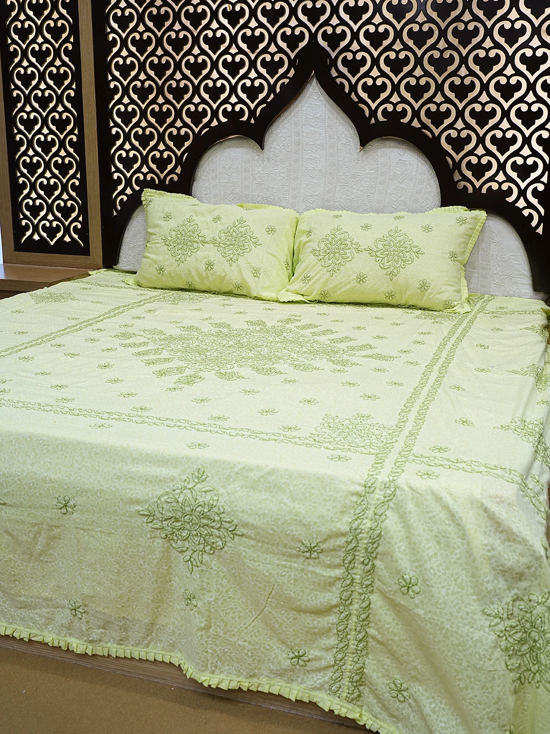 The Ashmere Grey bedspread is crafted from soft silver-grey cotton, its surface enriched with intricate hand techniques that lend depth and quiet sophistication. Delicate edging and thoughtful detailing enhance its refined character, reflecting a meticulous attention to craftsmanship and balance. The muted grey palette creates a calming foundation, seamlessly complementing both modern and classic interiors. With its graceful drape and serene presence, the bedspread brings a sense of order and tranquility to the bedroom, transforming the space into a sanctuary of comfort, restraint, and enduring elegance.