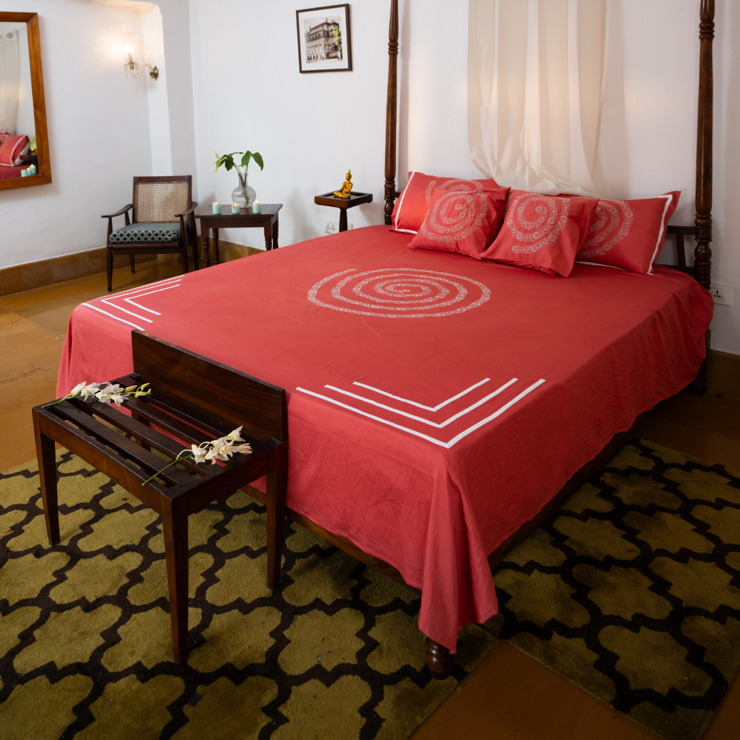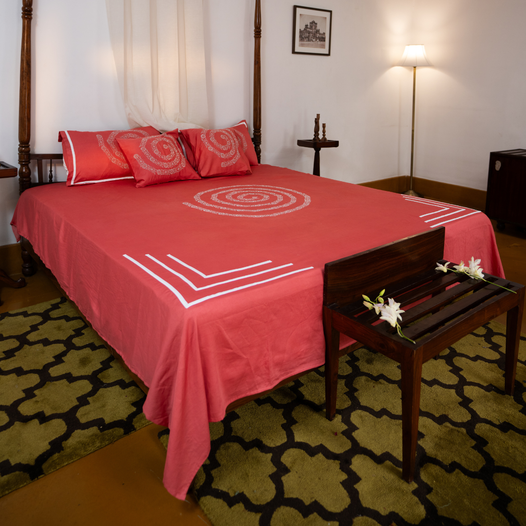 Crafted in soft, comforting cotton, the surface evokes a sense of sacred serenity, much like a mandala that draws the gaze inward, awakening inner bliss and harmony. Designed for contemporary and modern interiors, this bedspread transforms the bedroom into a sanctuary of balance, devotion, and soulful comfort—where elegance meets tranquility effortlessly.